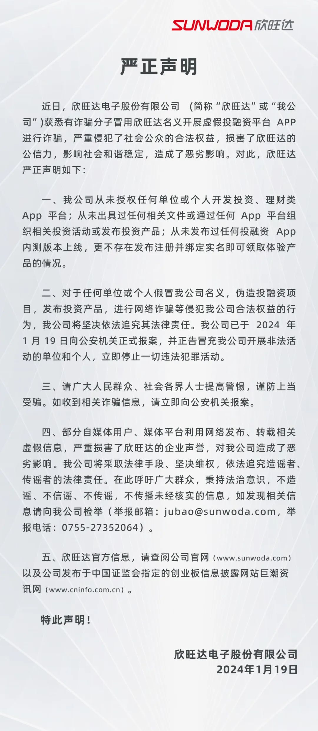 4GEneSQNKv2 society.huanqiu.comzh-Hansarticle欣旺达声明:有诈骗分子冒用欣旺达名义开展诈骗,已报案欣旺达声明:有诈骗分子冒用欣旺达名义开展诈骗,已报案/e3pmh19vt/e3ps21dgq欣旺达发布声明:欣旺达发布声明:1705657228000责编:赵钰阳欣旺达170565722800011[]{"email":"zhaoyuyang@huanqiu.com","name":"赵钰阳"}欣旺达发布声明: