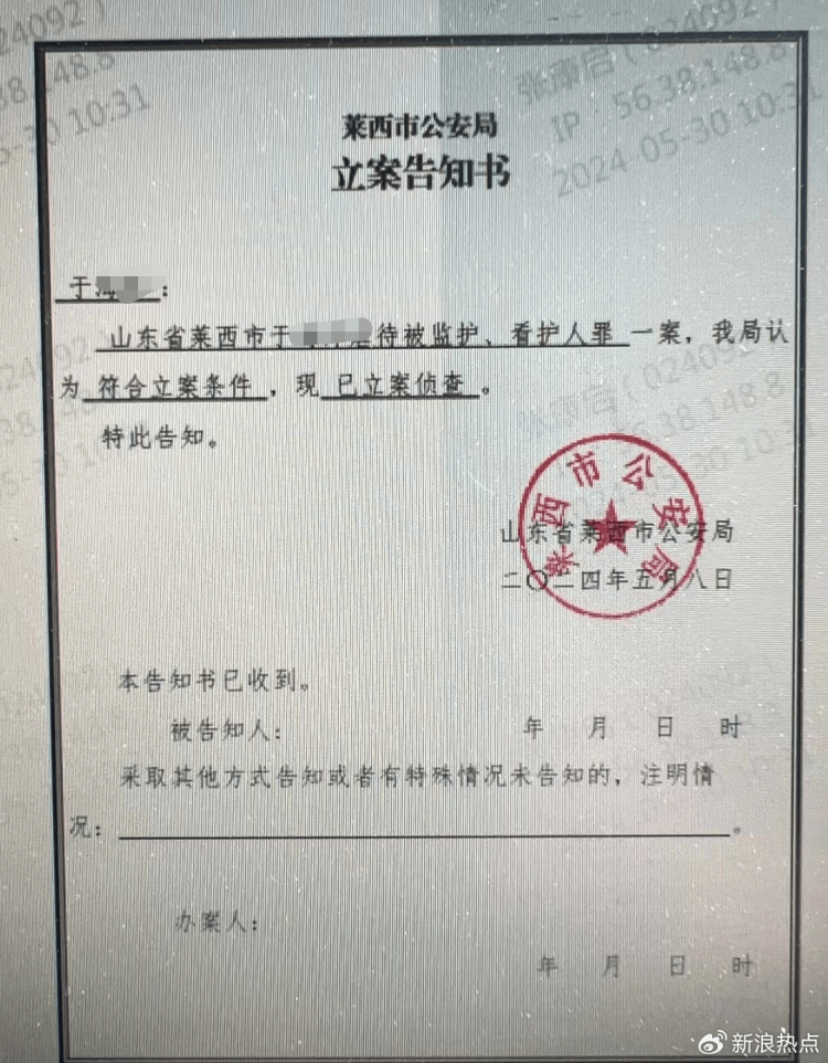 次日,警方以虐待被监护、看护人罪对此事进行立案侦查,于某某随后被刑事拘留。