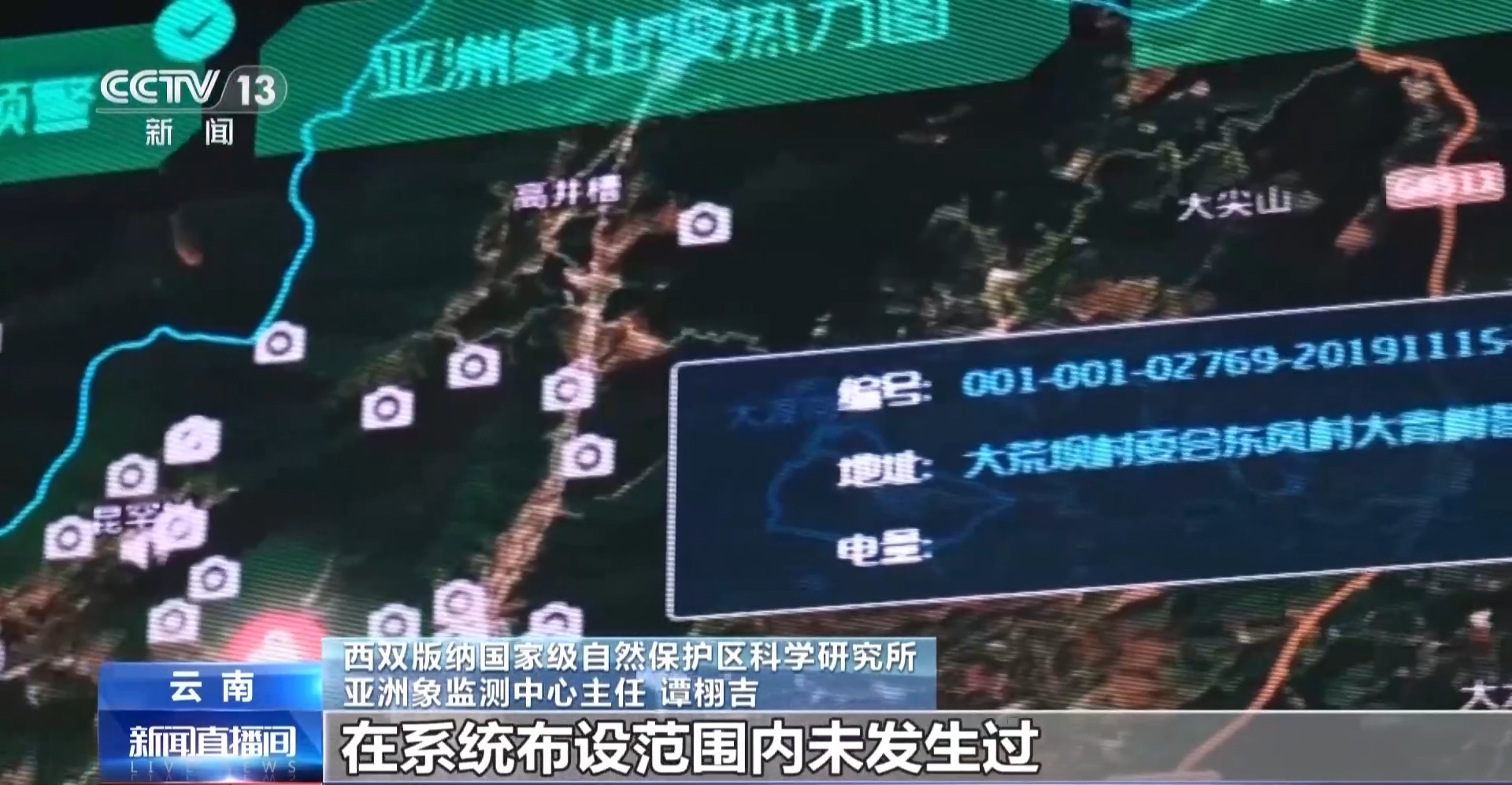 西双版纳国家级自然保护区科学研究所亚洲象监测中心主任 谭栩吉:从监测识别大象到发出预警,只需12秒左右。平台建设以来,在系统布设范围内未发生过人象冲突事件。现在有了无人机和全自动红外相机,亚洲象的实时监测就更为准确。