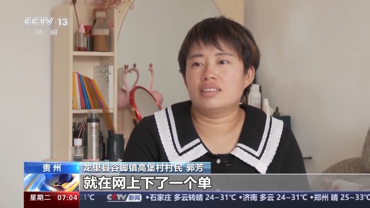 龙里县谷脚镇高堡村村民 郭芳:我一直都想换一张床,就在网上下了一个单。他们速度也非常快,三天就给我送到家了,而且还帮我抬上楼,又帮我安装,我觉得特别方便。以前买家具自己要去商场挑,可能一次性也挑不了那么满意的,有时候自己跑也不太方便,现在自己在家里面就可以买了。