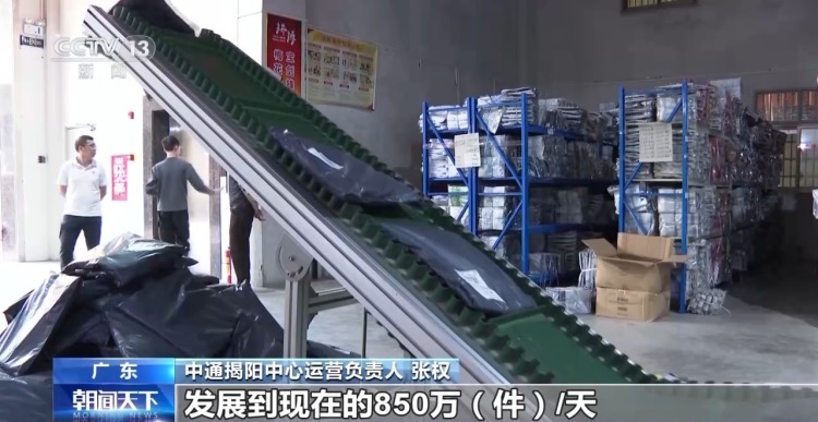 广东省揭阳市泽楷电子商务有限公司总经理 倪泽凯:我们只需要在仓库里面打单、包装,快递有汽车上门收货的,时效也非常快。省内基本上一天就可以到达,省外有一些快的两天就可以到达了。