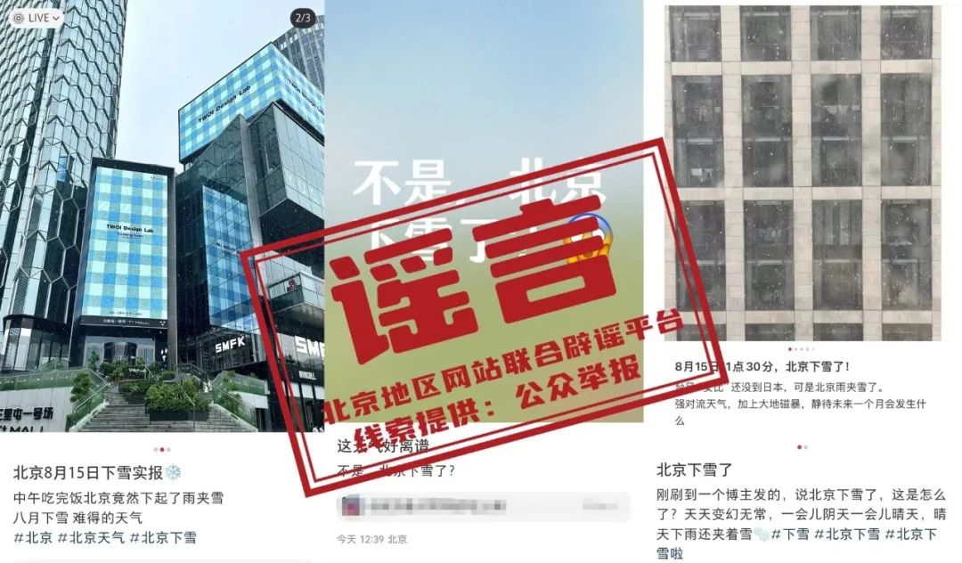 8月15日,有多名网友在社交平台发帖称“北京下雪了”,并配发图片、视频。