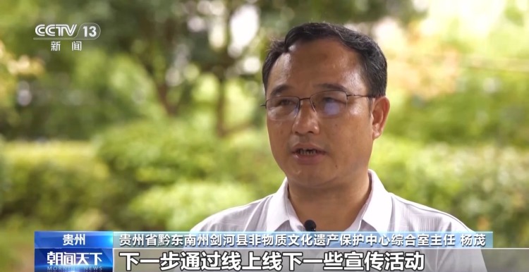 贵州省黔东南州剑河县非物质文化遗产保护中心综合室主任 杨茂:下一步,通过线上线下一些宣传活动,吸引更多的游客和设计师到剑河调研,把剑河的锡绣推广出去,获得更大的市场和发展空间。