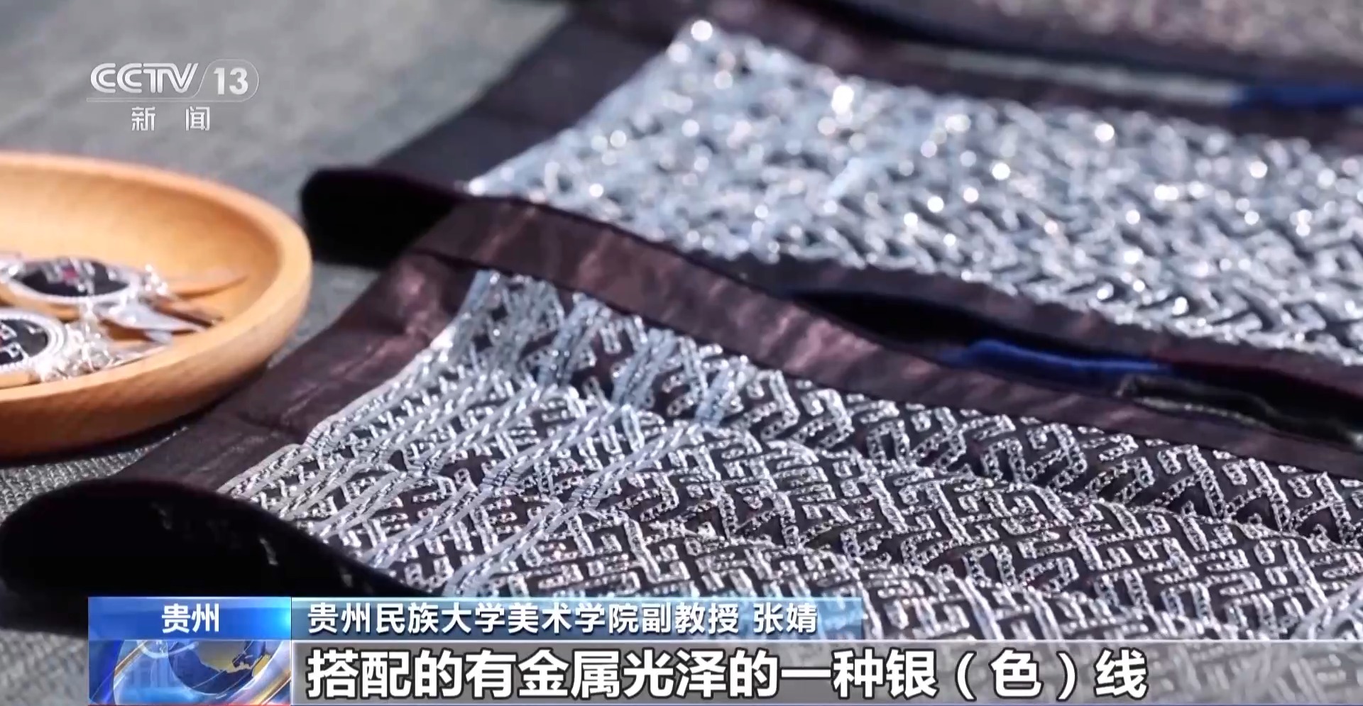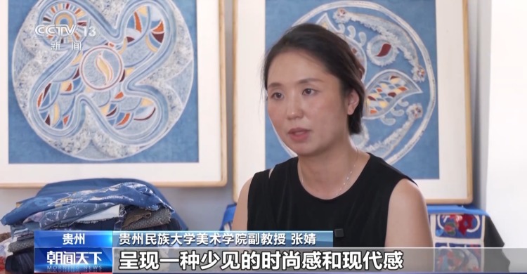 贵州民族大学美术学院副教授 张婧:在它的色调和质感的对撞和对比下,使得剑河锡绣呈现一种少见的时尚感和现代感。