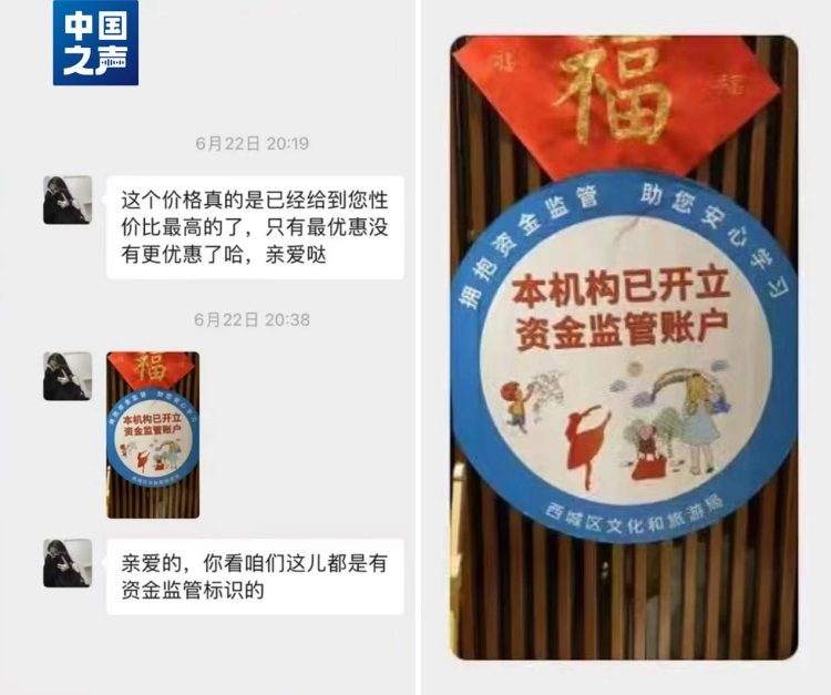 北京的家长刘女士表示,自己在秦汉胡同的教室里还看到过“本机构已开立资金监管账户”的标识。“店长说放心交钱,有监管账户。但现在去找文旅局,却说没有监管,这个钱好像拿不出来一样。”