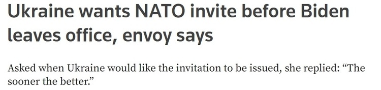 在泽连斯基公布计划的同一天,乌克兰驻北约使团团长娜塔莉娅·加利巴连科在接受路透社采访时表示,基辅方面正寻求在美国总统拜登卸任前,获得加入北约的邀请。