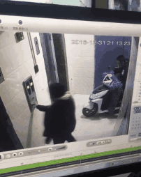 电动自行车撞击电梯厅门,骑车人坠落至井道。