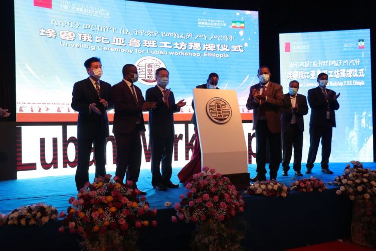 2021年4月28日,中国和埃塞俄比亚代表在亚的斯亚贝巴出席埃塞俄比亚鲁班工坊揭牌仪式。