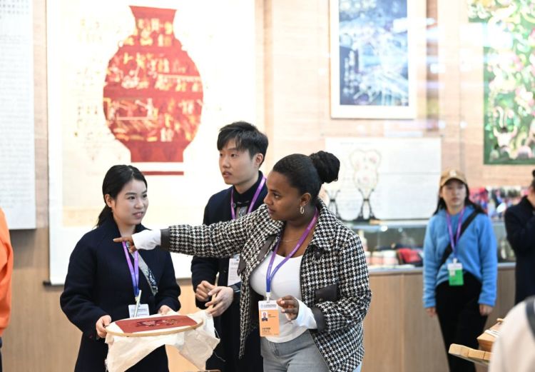 凯特(左三)在2024年世界职业技术教育发展大会上参观(11月22日摄)。