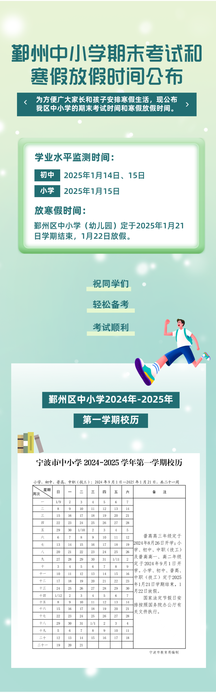 慈 溪 2024学年第一学期 小学、初中期末考试时间