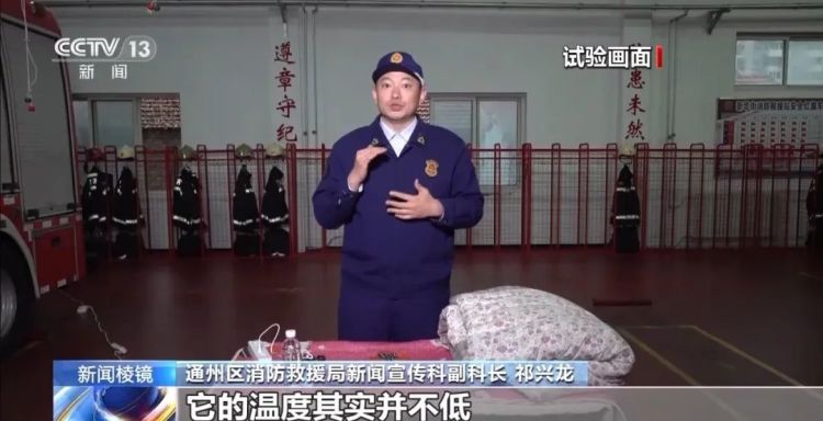 北京市通州区消防救援局新闻宣传科副科长 祁兴龙:由于加热丝接触不良产生的高温点,它的温度其实并不低,这个高温点的温度可能会达到800摄氏度以上。可以轻易烫穿绝缘体和毯体,然后把被褥里的棉花引燃。