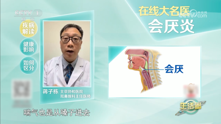 会厌位于人体气管上方、舌根根部。人在说话或呼吸时,会厌向上使喉腔开放;吞咽时,会厌则向下盖住气管,防止食物进入造成呛咳。一旦会厌发炎,这层“盖子”就会不断肿胀,严重时会肿成球状,导致气道封闭,让人透不上气。