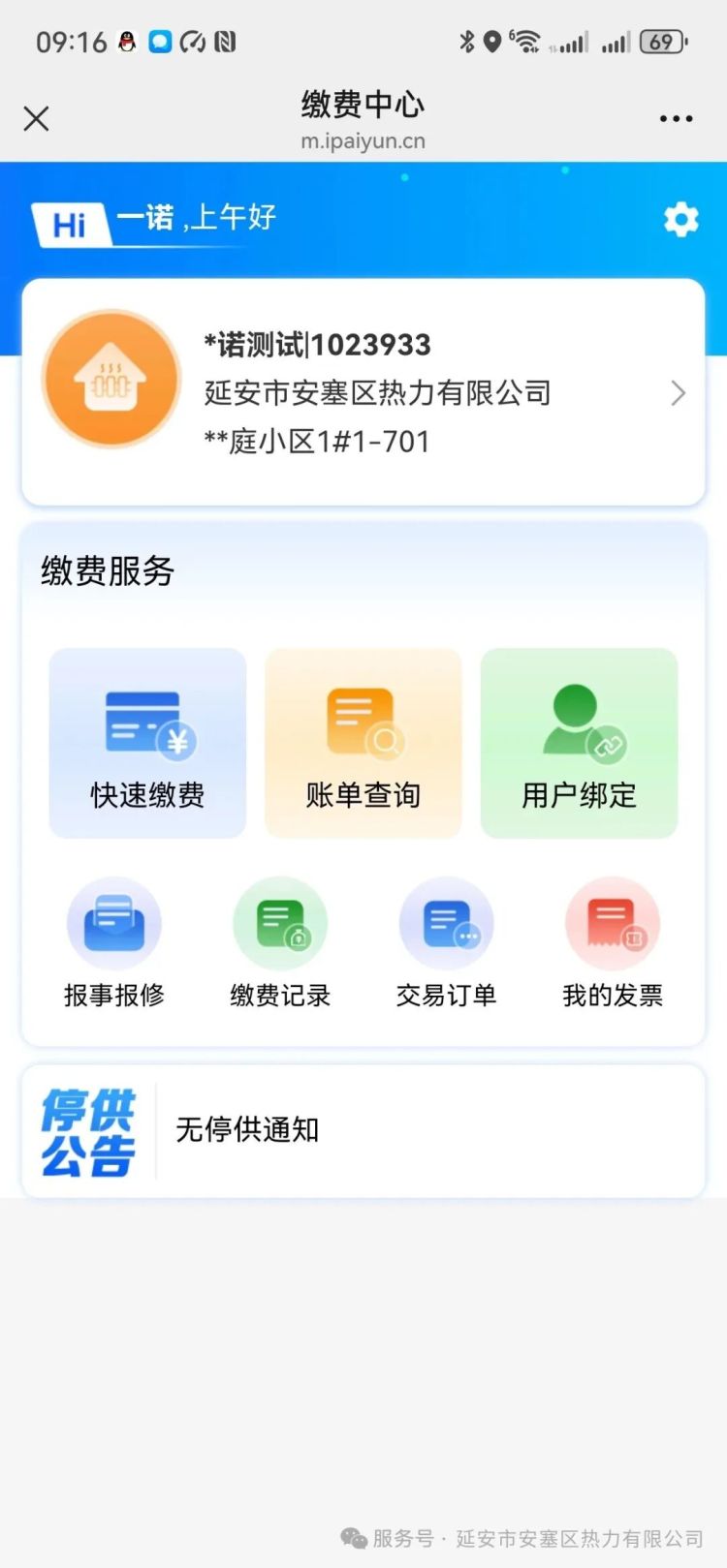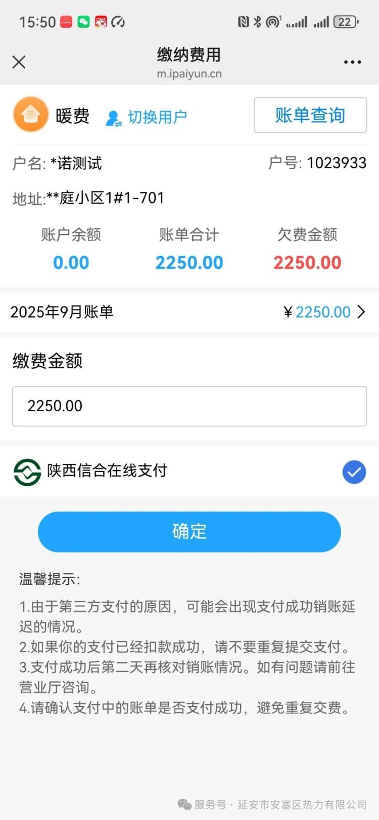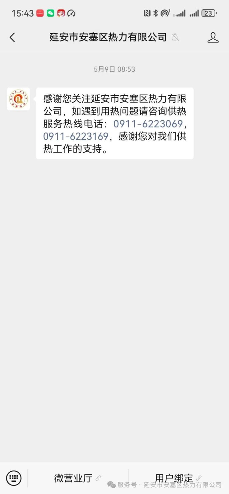 (2)线上缴费地址:通过搜索“延安市安塞区热力有限公司”微信公众号,完成线上缴费。