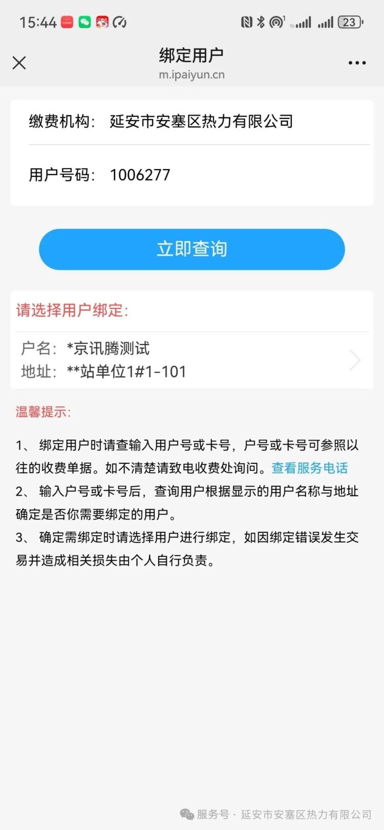 第二步:绑定“延安市安塞区热力有限公司”微信公众号;