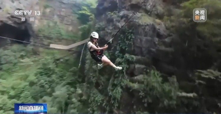 除了用丑萌可爱的物品彰显个性,旅行“必出片儿”也成为当下很多年轻人表达自我的一种方式。今年暑期开始,贵州开阳县猴耳天坑景区异常火爆。这里是一处典型的岩溶漏斗,直径约300米,坑深约280米,依托独特的地质奇观,当地开发出了蹦极、大秋千、探洞等多种极限运动。而就在如此惊险刺激的体验之下,也要出片!