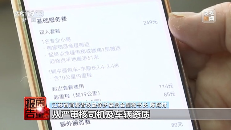 江苏省消费者权益保护委员会投诉部主任 傅铮:我们本次调查其实是从消费者以及货车司机等两方面角度,来进行全面深入调查,来判断平台整个生态环境问题,总共是四方面问题,一是价格机制不透明;二是平台实际信息和提供服务存在不符;三是货车司机以及平台提供的相关服务质量参差不齐;四是纠纷解决机制低效失衡。