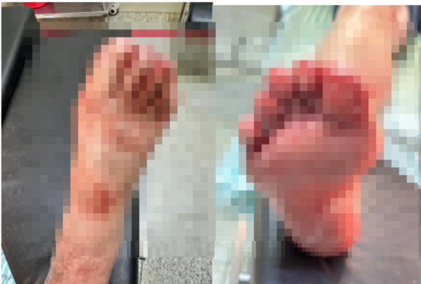 伤者受伤的腿部 医院供图