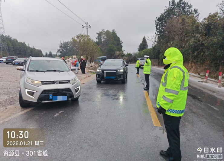 省道S301线193Km—207Km(资源县资源镇金山村旺田至黄宝村白石界)路段路面结冰,经资源公路养护中心除冰作业,车辆可缓慢通行(该路段观赏雾凇的人、车较多)。