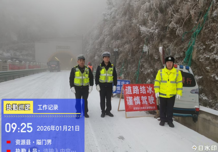 资源公路养护中心已组织人员、机械进行除冰作业,在结冰路段两端设置好标志标牌,交警部门已对该路段进行交通管制,禁止车辆通行。