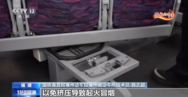 国铁南昌局福州动车段福州南动车所技术员 韩志超:建议用原装充电器与充电线给电子产品充电,避免因充电设备不匹配导致起火。如果手机滑入座椅缝隙无法取出,也不要擅自调整座椅,以免挤压导致起火冒烟。