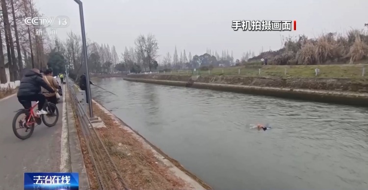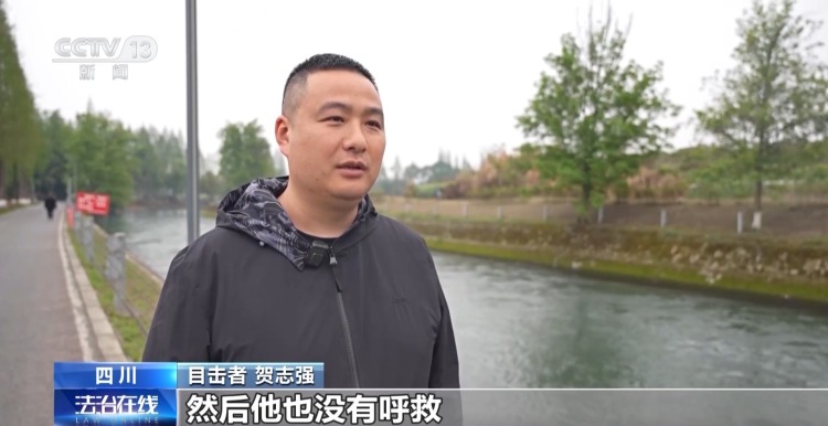 目击者 贺志强:我们最先发现的,看见有个人从河道上游漂下来,是个男性,大概年龄是40岁左右,他也没有呼救。我们看到后就跟着跑,因为水是流动的,流速也比较快,然后边喊河里有人,喊救命,救人。