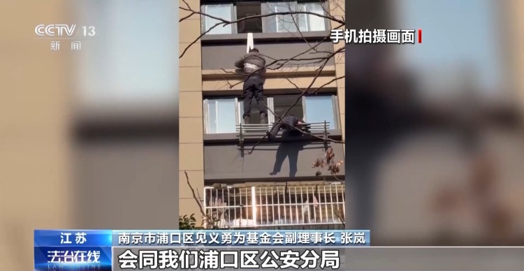 1月2日,江苏南京,一名老人从15楼坠落到7层窗外的晾衣架上,半个身体悬空,随时有坠落的危险。小区物业第一时间得知情况,立即通知小区保安赶到现场。