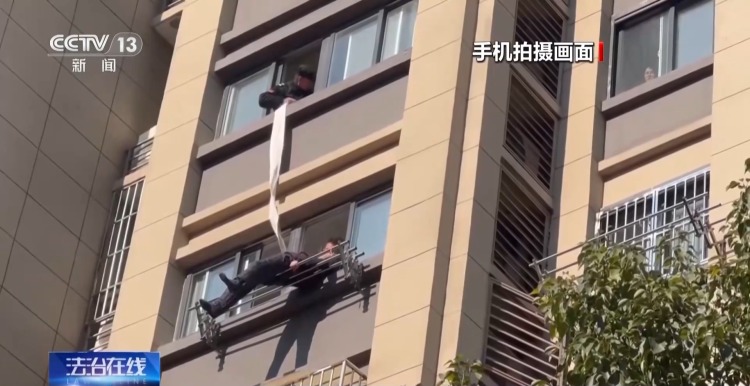 好在7层住户家的窗户是开着的,张伟先跳入7层住户家中,又开始尝试将老人拽进屋子。