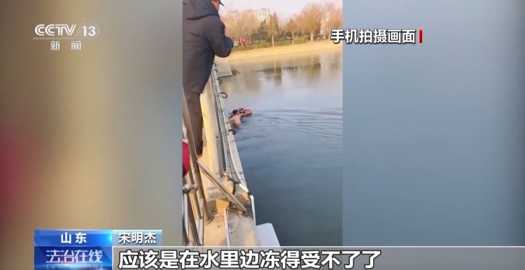 据了解,当天的户外气温只有-6℃左右,见到有人落水,宋明杰及附近的群众赶紧想办法救人。
